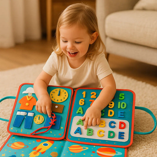 Montessori-Beschäftigungsbrett für Kleinkinder ⎜ Filz-Aktivitätsbuch zum Erlernen von Zahlen, Buchstaben und motorischen Fähigkeiten
