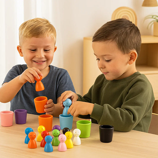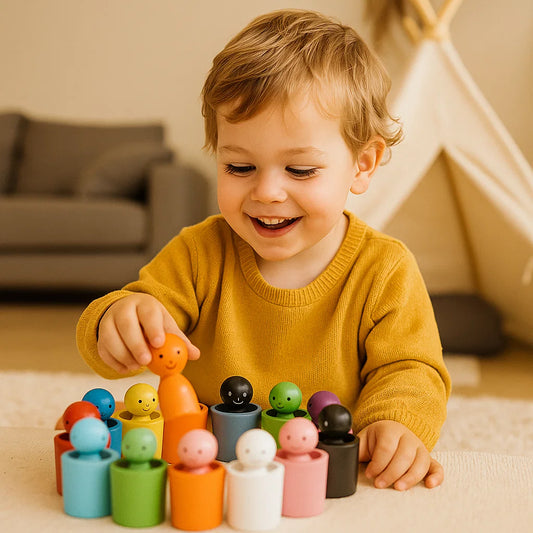 Holzspielzeug zum Farbsortieren für Kinder ⎜ Sortierspiel mit Steckpuppen und Bechern für die Feinmotorik und das visuelle Lernen