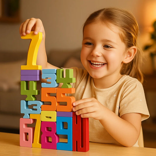 Holz-Zahlenklötze für Kinder ⎜ Buntes Stapelspielzeug zum Zählen, für logisches Denken und frühes Mathematiklernen