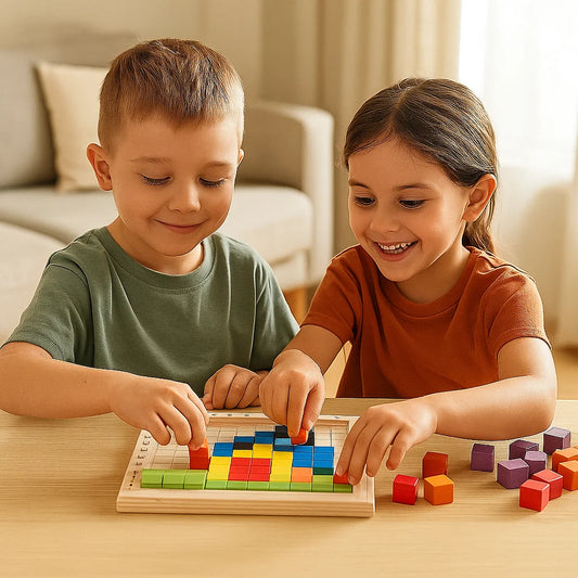 Holzpixel-Puzzlespiel für Kinder ⎜ Farbsortierblöcke mit Gitterbrett für Logik und Mustererkennung