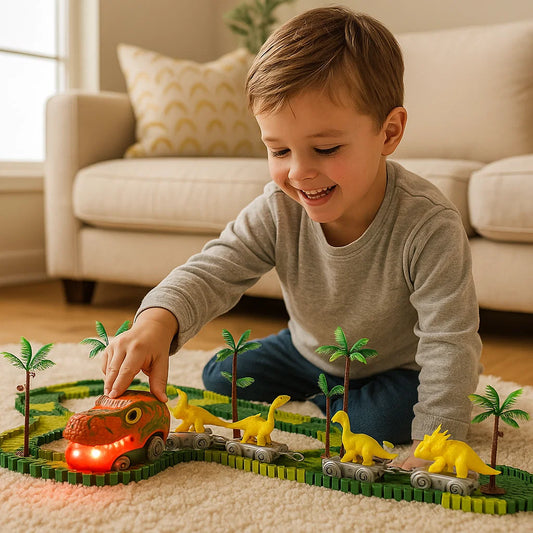 Dinosaurier Strecken Abenteuer – Flexible Rennbahn mit leuchtendem Zug