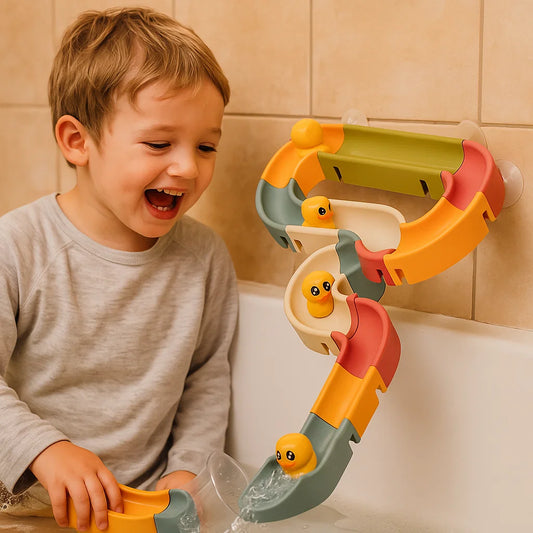 Wasserrutschen-Badespielzeug für Kleinkinder ⎜ DIY-Bahn mit Saugnäpfen und rollenden Enten für Spaß beim Baden
