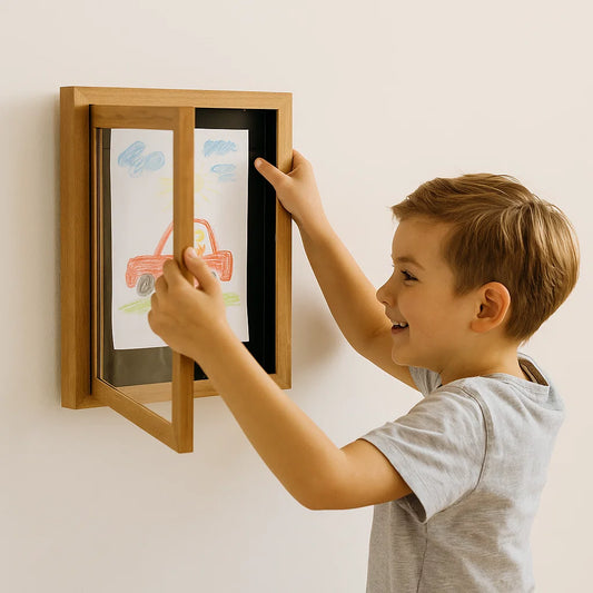 Kinderkunst-Bilderrahmen ⎜ Aufklappbarer Bilderrahmen mit Stauraum für Zeichnungen und kreative Projekte