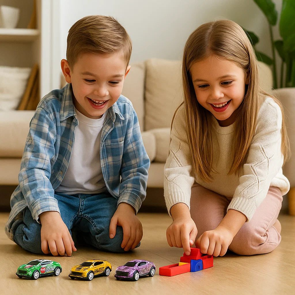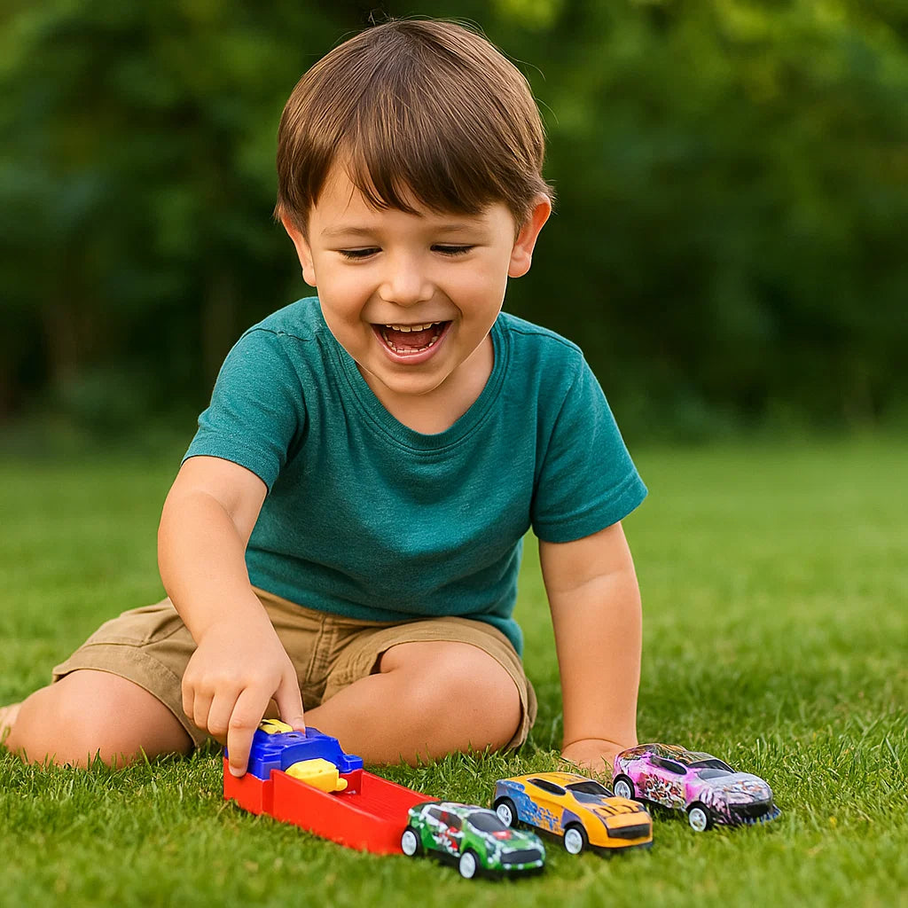 - 🌟 Vier verschiedene Rennwagen: Jedes Auto hat ein einzigartiges Design, das für Abwechslung und Sammelspaß sorgt. So können Kinder ihre Lieblingswagen auswählen und immer neue Rennen gestalten.