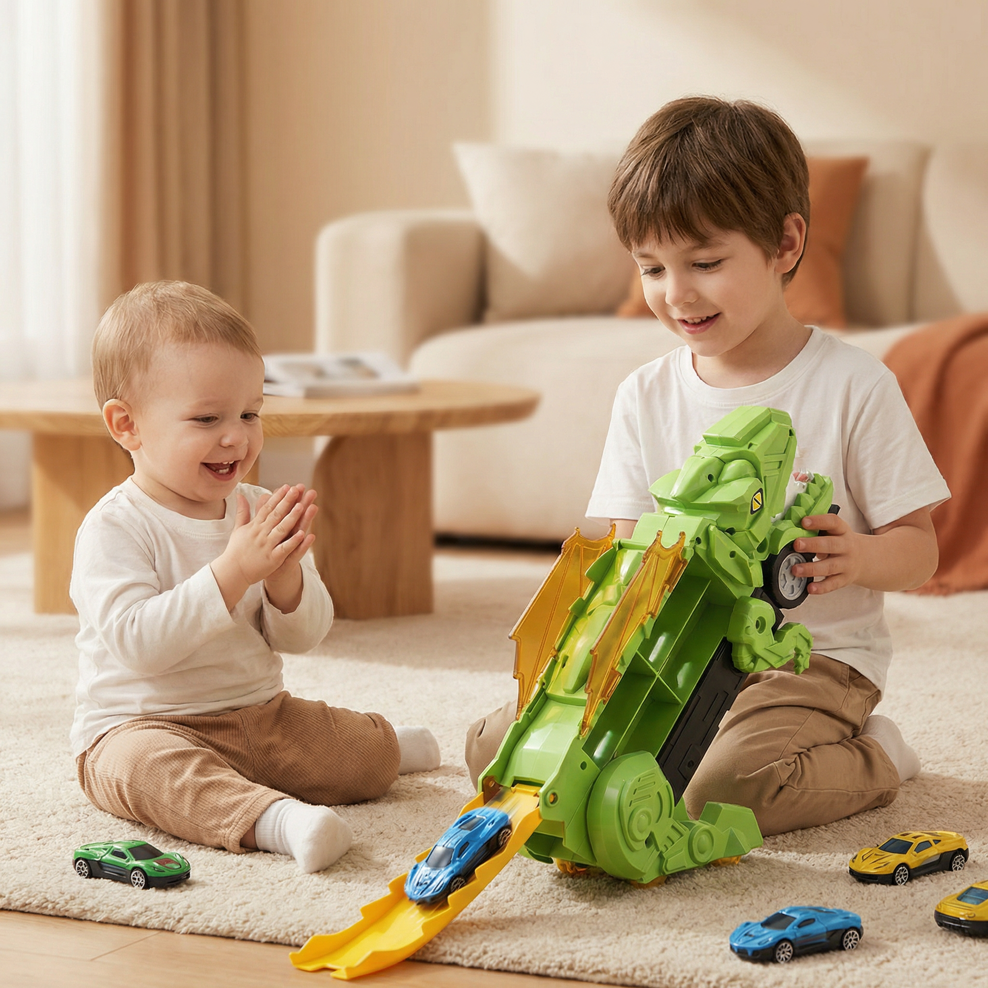 Der Dinosaurier Auto Spiel Truck bringt actiongeladenen Spielspaß direkt zu dir nach Hause! Diese aufregende Kombination aus Dinosaurier und Fahrzeug begeistert kleine Abenteurer und sorgt für stundenlangen Spielspaß. Verwandle den Truck in einen mächtigen Dinosaurier und lass ihn Autos verschlingen – das perfekte Spielzeug für Kinder, die von Dinosauriern und Autos nicht genug bekommen können!