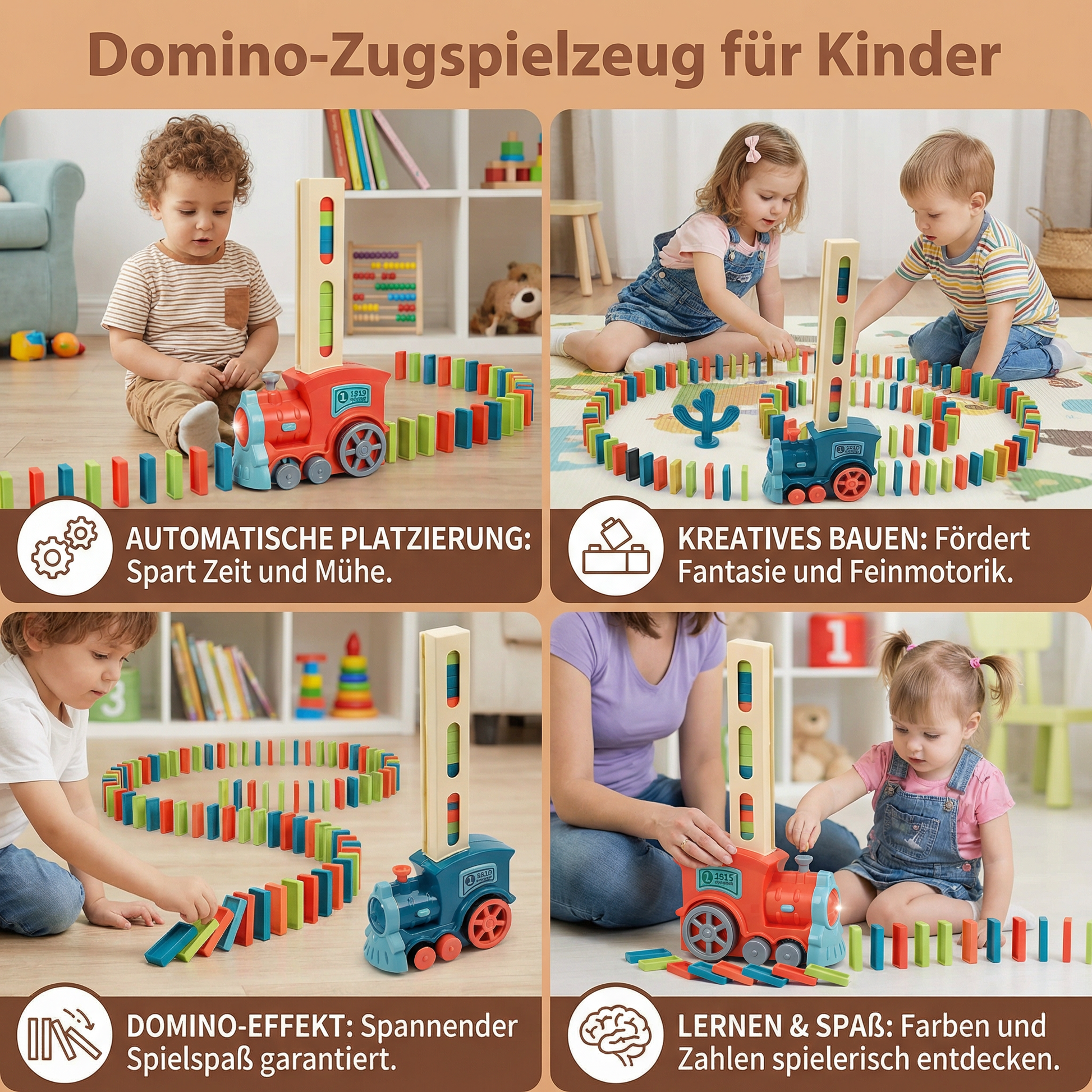Das Domino-Zugspielzeug ist bei meinen Kindern sofort gut angekommen. Sie spielen stundenlang damit und bauen immer neue Kreise und Muster.