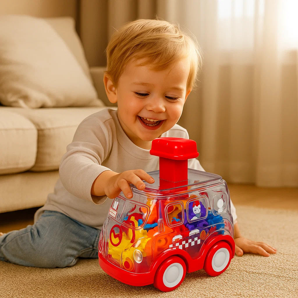 Mit den Zahnrad Spielautos können Kinder auf spielerische Weise die Mechanik der Zahnräder verstehen. Durch das einfache Drücken werden sowohl die motorischen Fähigkeiten als auch das technische Verständnis gefördert.