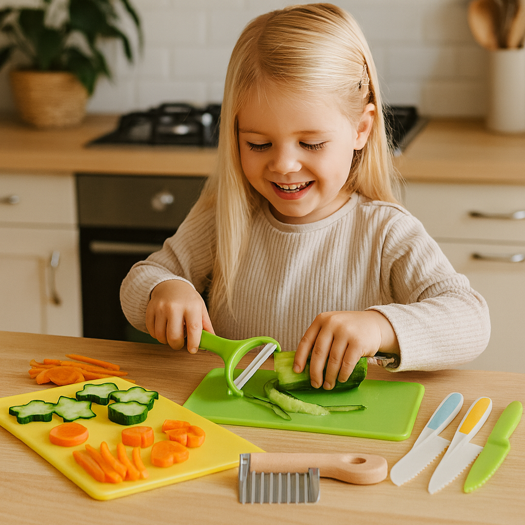 Unser Set ist nicht nur ein Spielzeug, es ist ein Werkzeug zur Förderung der Selbstständigkeit. Kinder lernen durch das Nachahmen und Ausprobieren – und genau dazu lädt unser "Kleine Gourmetköche" Set ein.