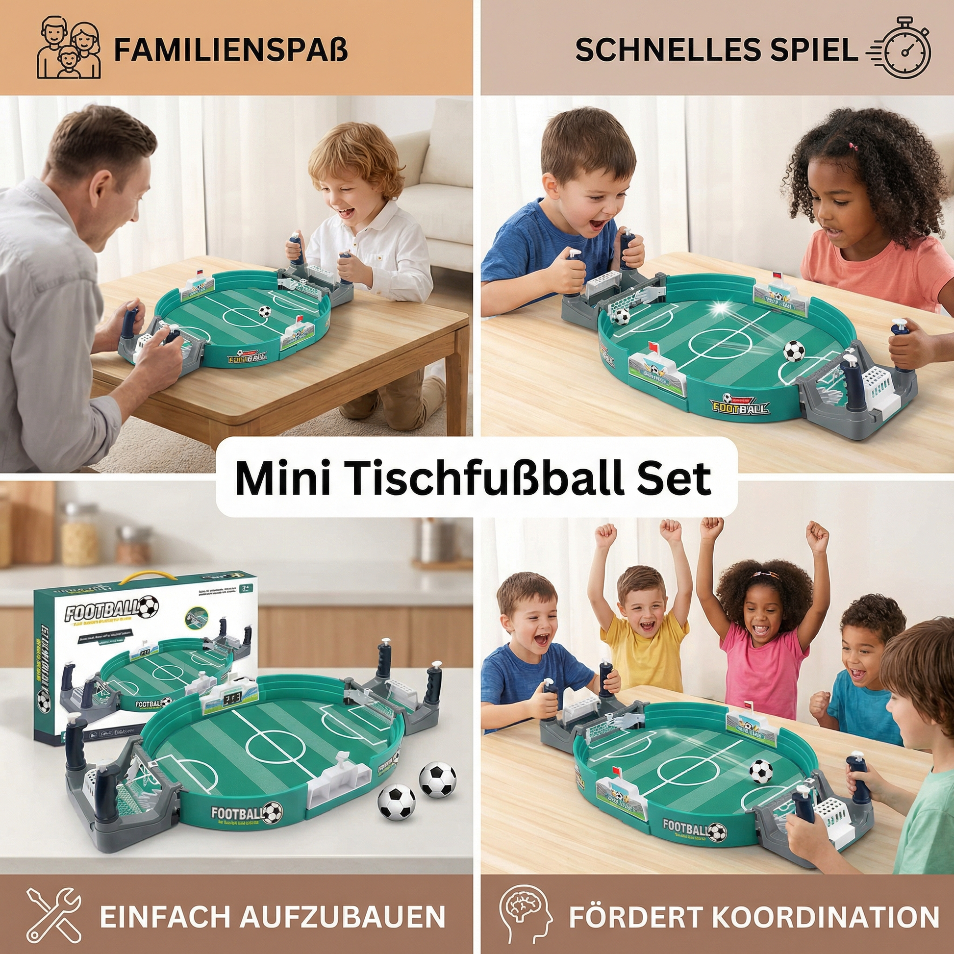 Mit dem Mini Tischfußball Set holst du dir den rasanten Spaß und die spannenden Duelle des Fußballstadions direkt auf deinen Tisch. Egal ob Kinder oder Erwachsene, dieser Mini-Fußballtisch sorgt für packende Matches und stundenlange Unterhaltung.