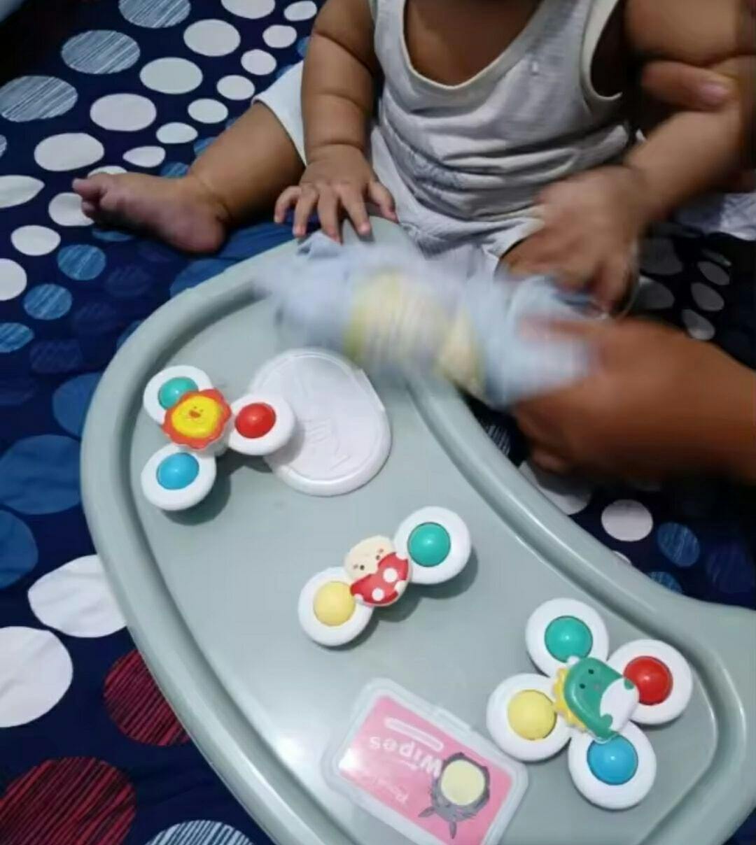 "Das Saugnapf-Drehspielzeug ist einfach perfekt für meinen kleinen Sohn! Die Farben und Bewegungen faszinieren ihn jedes Mal aufs Neue. Ich finde es super, dass man es überall anbringen kann."