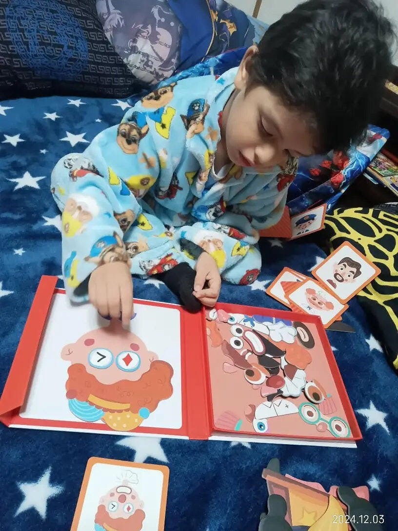 - 🧩 Kreatives Kombinieren fördern – Durch das Zusammensetzen der Teile entstehen immer neue Gesichtsausdrücke, die Fantasie und Neugier anregen.