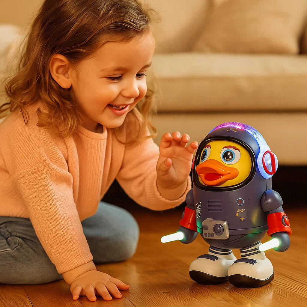 Mit ihren aufregenden Tanzbewegungen und den fröhlichen Melodien sorgt die Tanzende Astronaut Ente für viele glückliche Momente. Sie hilft dabei, die Fantasie zu beflügeln und lässt Kinder in die Rolle eines kleinen Raumfahrers schlüpfen, während sie die Ente beobachten, wie sie ihren „Weltall-Tanz“ aufführt.