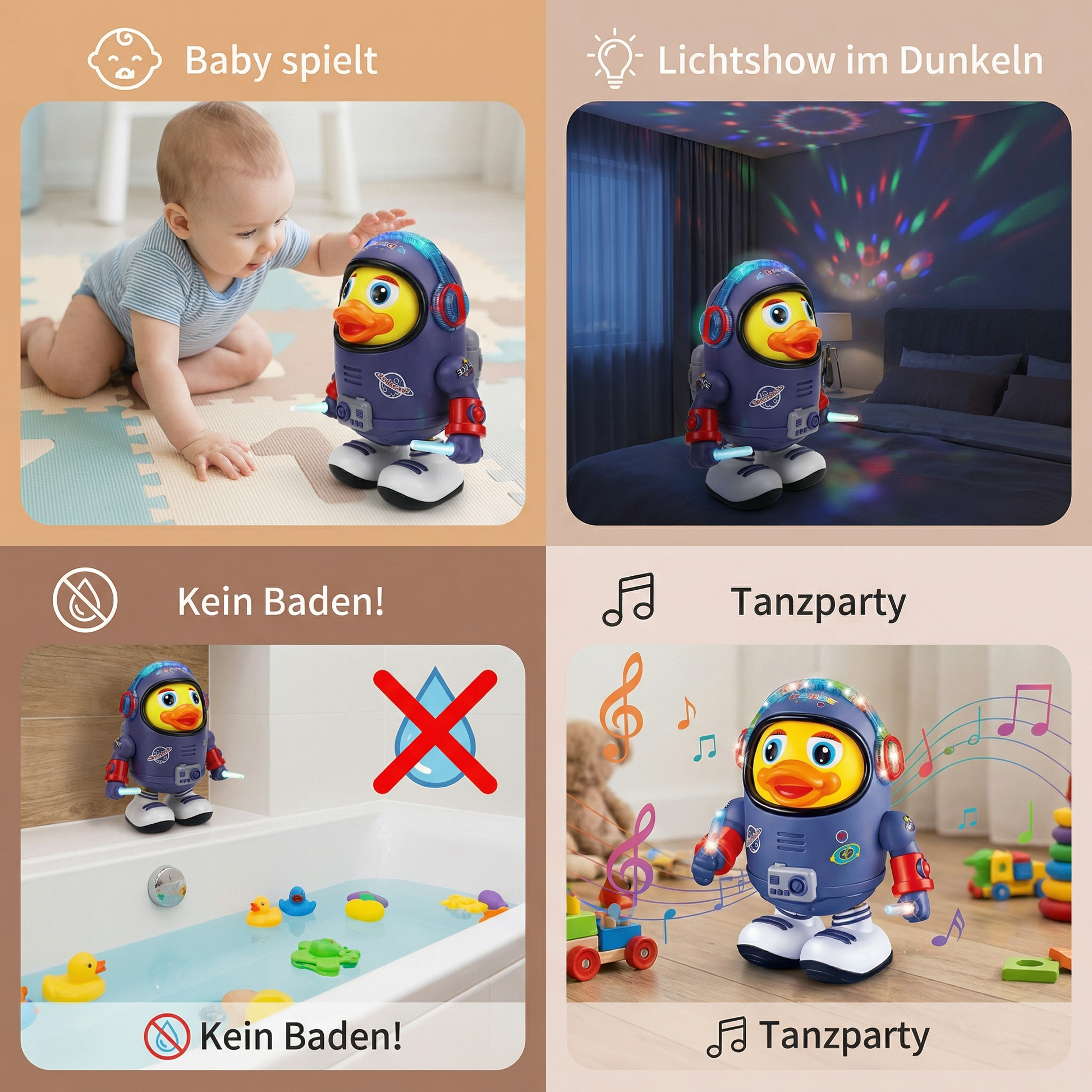 - 🚀 Spannende Tanzbewegungen: Die Ente tanzt im Takt der Musik und sorgt so für jede Menge Unterhaltung.